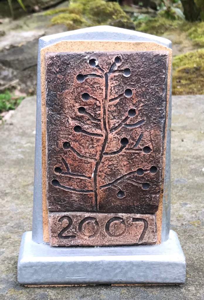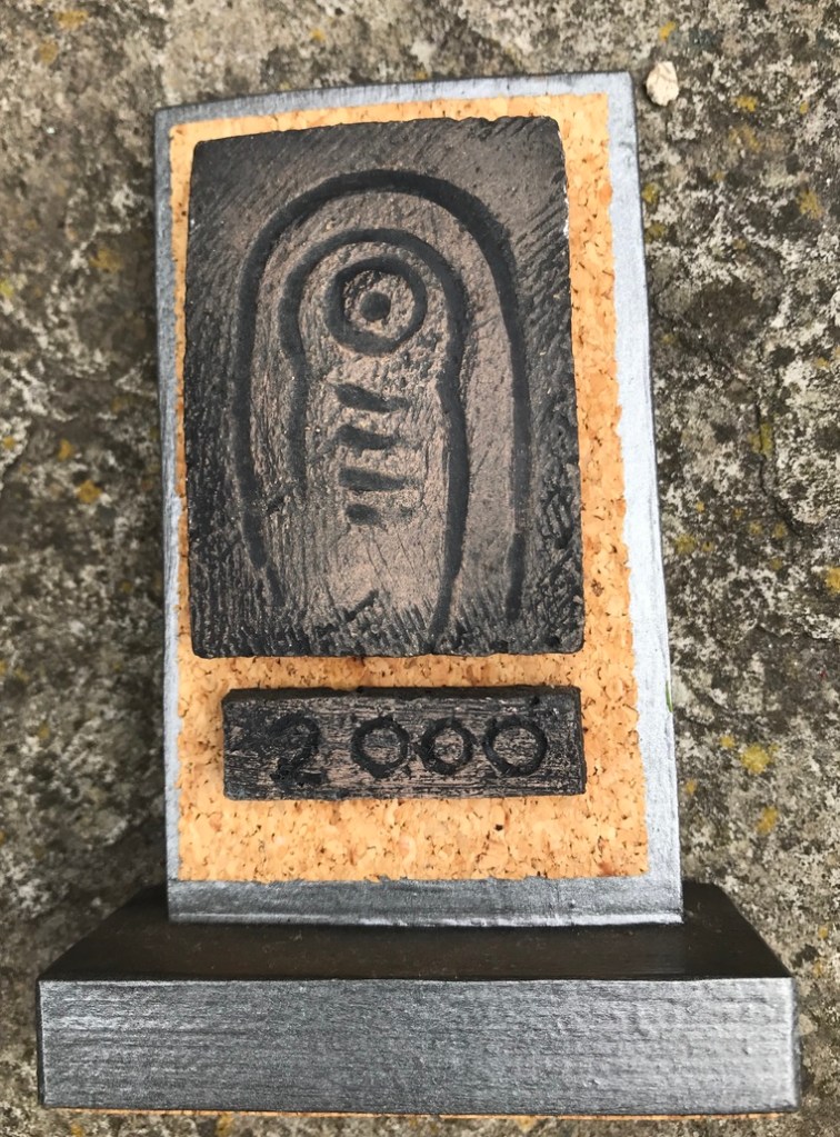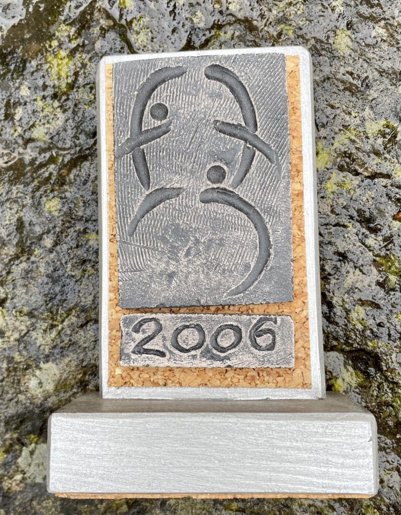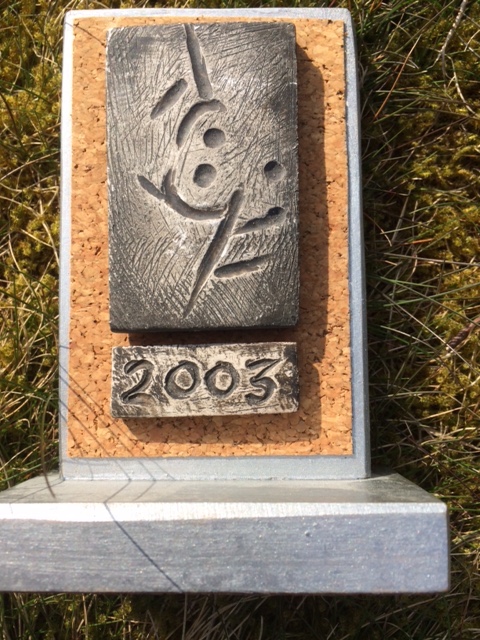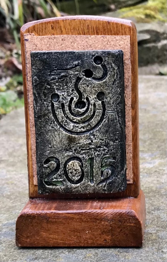David Walker made these excellent and unique trophies until 2007 when James Fonquernie agreed to continue with the same theme. Each year a different Ilkley Moor rock carving is used for the basis of the design. The design for the annual Jack Bloor trophies was inspired by the Swastika Stone (Checkpoint 2), the most famous rock carving on Ilkley Moor.