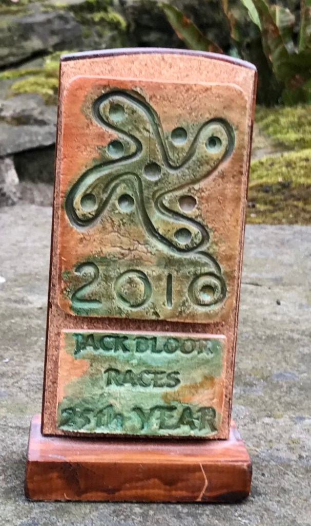 The Small Trophies have been presented at the Jack Bloor Races since 1985. Pat Bloor initiated the idea of using a rock carving from Ilkley Moor for the two overall winners trophies.
